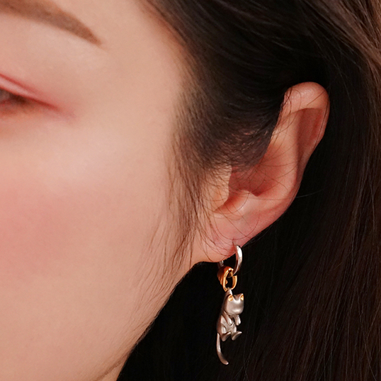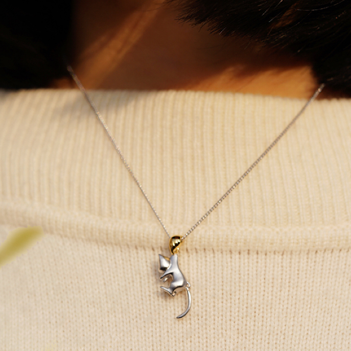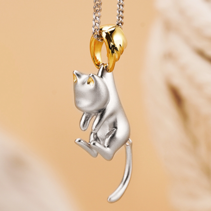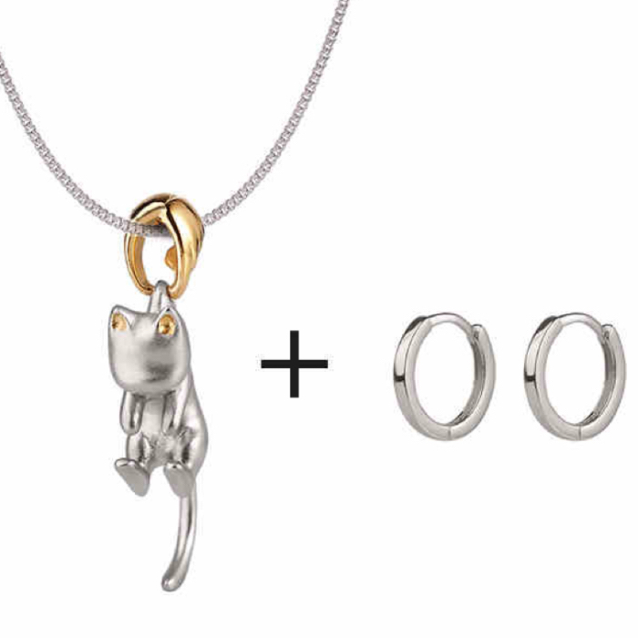 Product: Cat-Shaped Silver Pendant Necklace and Earrings