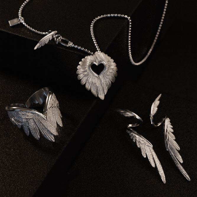 Cat-Shaped Silver Pendant Necklace and Earrings