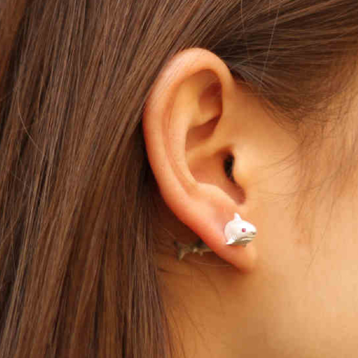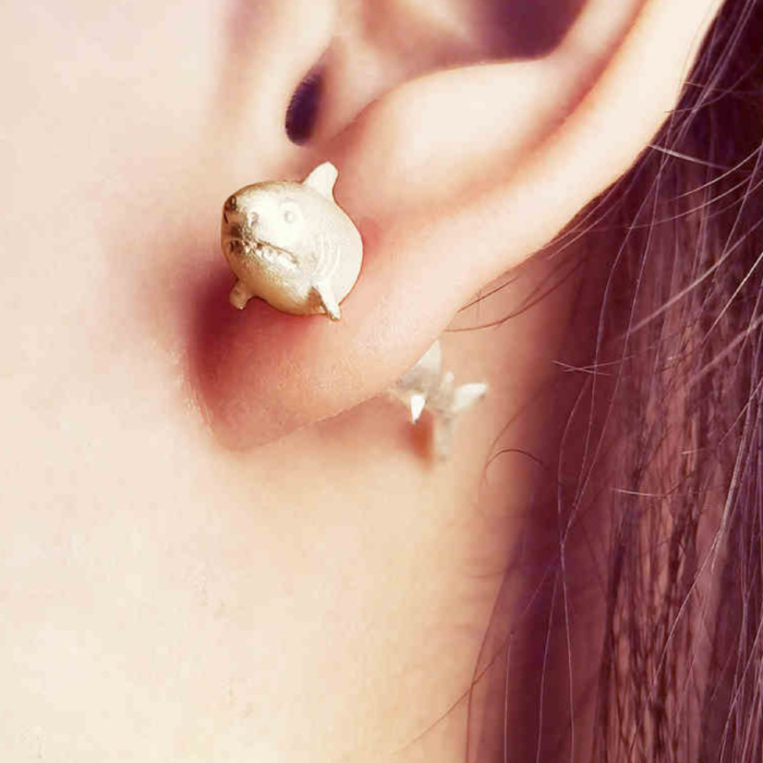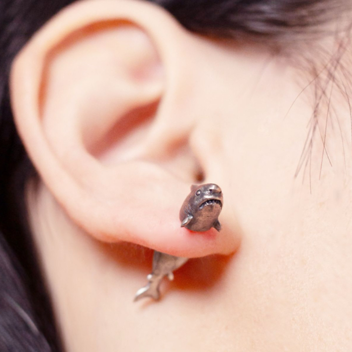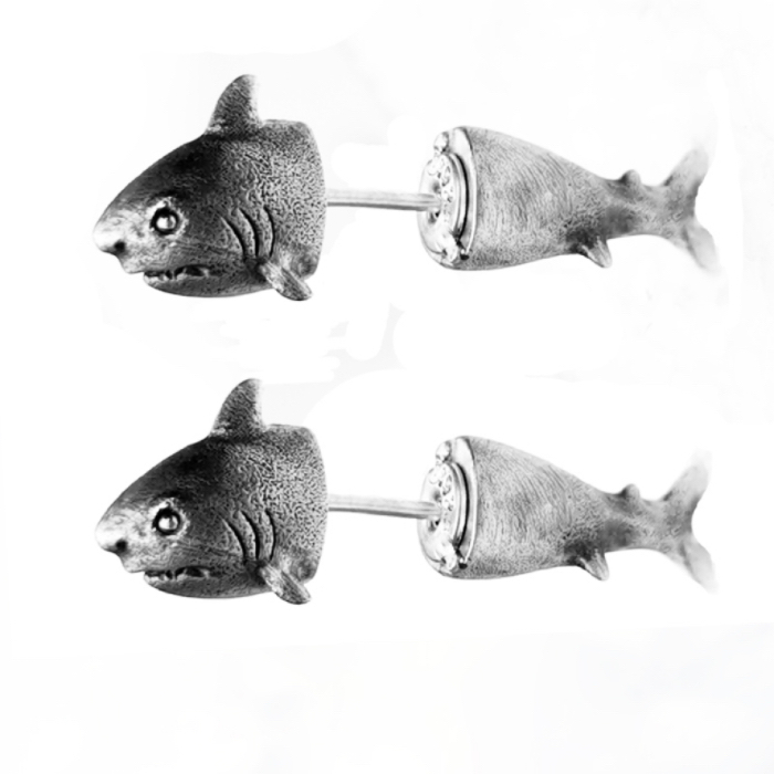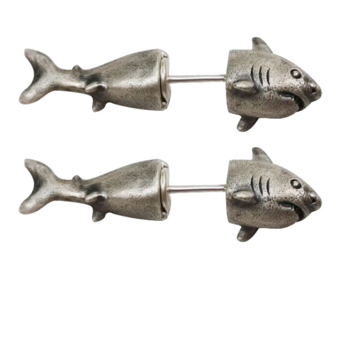 Product: Shark-Shaped Through-Ear Silver Earrings